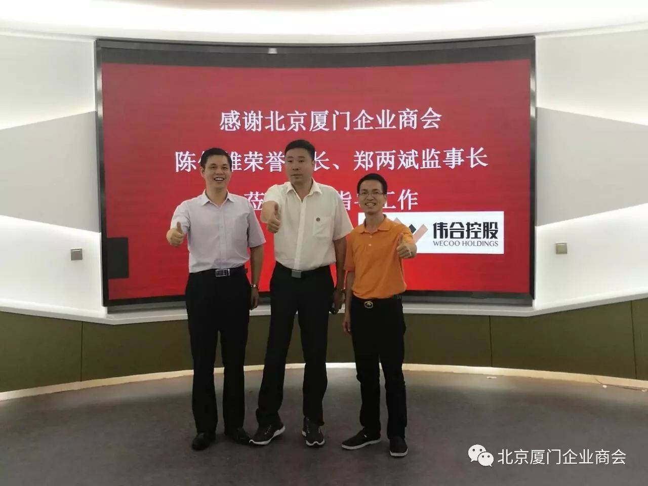 7月24日,我会名誉会长陈信雄、监事长郑两斌拜访副会长曾建华单位厦门伟合科技有限公司,受到董事长曾建华的热情接待。