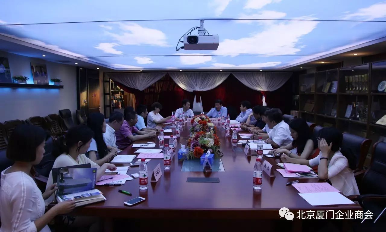 会长蒋清林简要介绍了商会内部机构和发展现状,就现有资源信息与经信局一行作了沟通对接。他提到,为积极参与国家“一带一路”建设,商会还专门成立了独有的海外投资委员会和金融投资与并购委员会,搭建项目对接服务平台,助力企业走出去,促进商会组织发展。他表示,将积极牵线搭桥,引荐优质企业回乡投资兴建,为家乡厦门的经济发展做力所能及的贡献。
