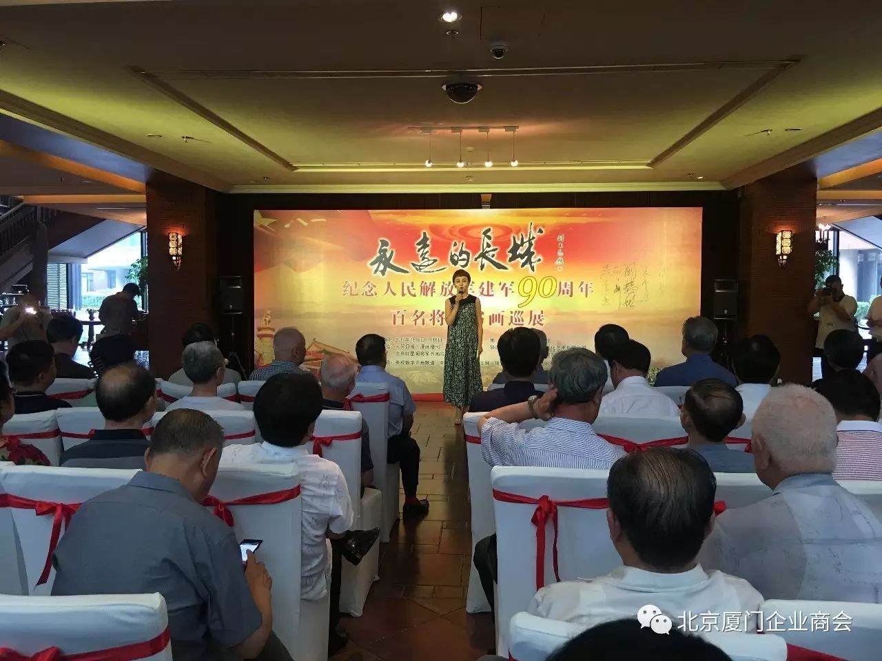 7月6日,为纪念人民解放军建军90周年,由人民日报•漫画增刊、北京红星阁将军书画院主办,河南省御笔坊文化艺术有限公司、拓展文化协会暨东方毅集团协办的“永远的长城•百名将军书画展”在北京马奈草地美术馆开幕。我会会长蒋清林,副会长王天福,副会长张雄单位陈家心、祝方芳,执行副秘书长韩雪等应邀出席。