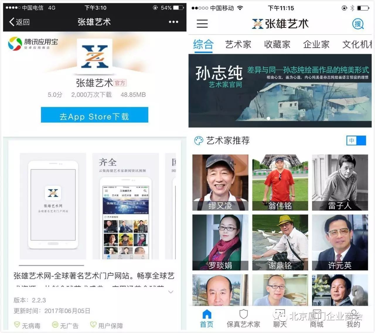 张雄艺术网app腾讯应用宝的下载量达到两千万