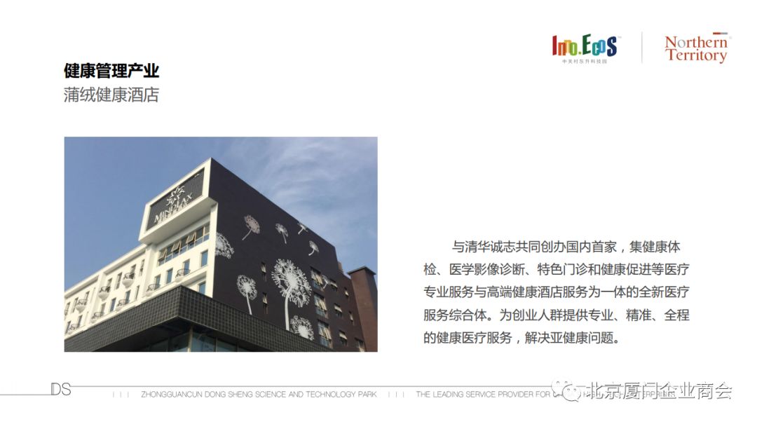 中关村东升科技园是中关村区域引进先进科技园创办理念的示范园区。园区座落于北京海淀学府区,总规划建筑面积约120万平方米,分二期开发,其中一期中关村东升科技园•北领地占地面积16万平方米,建筑面积约16万平方米,于2009年5月开盘。已有15栋花园式、低密度独栋学院派风格建筑构成了集总部基地、高科技产业研发基地、加速器及企业孵化基地、高新科技成果展示及相关配套服务于一体的国内一流生态型综合园区。二期占地43公顷,规划建筑面积近百万平方米,将为高科技企业办公研发用房,大型商业区及配套住宅等。一二期整体规划参考了世界上多处著名高科技聚集区是顺应国际发展趋势,引领中国企业步入生态办公的未来科技园。