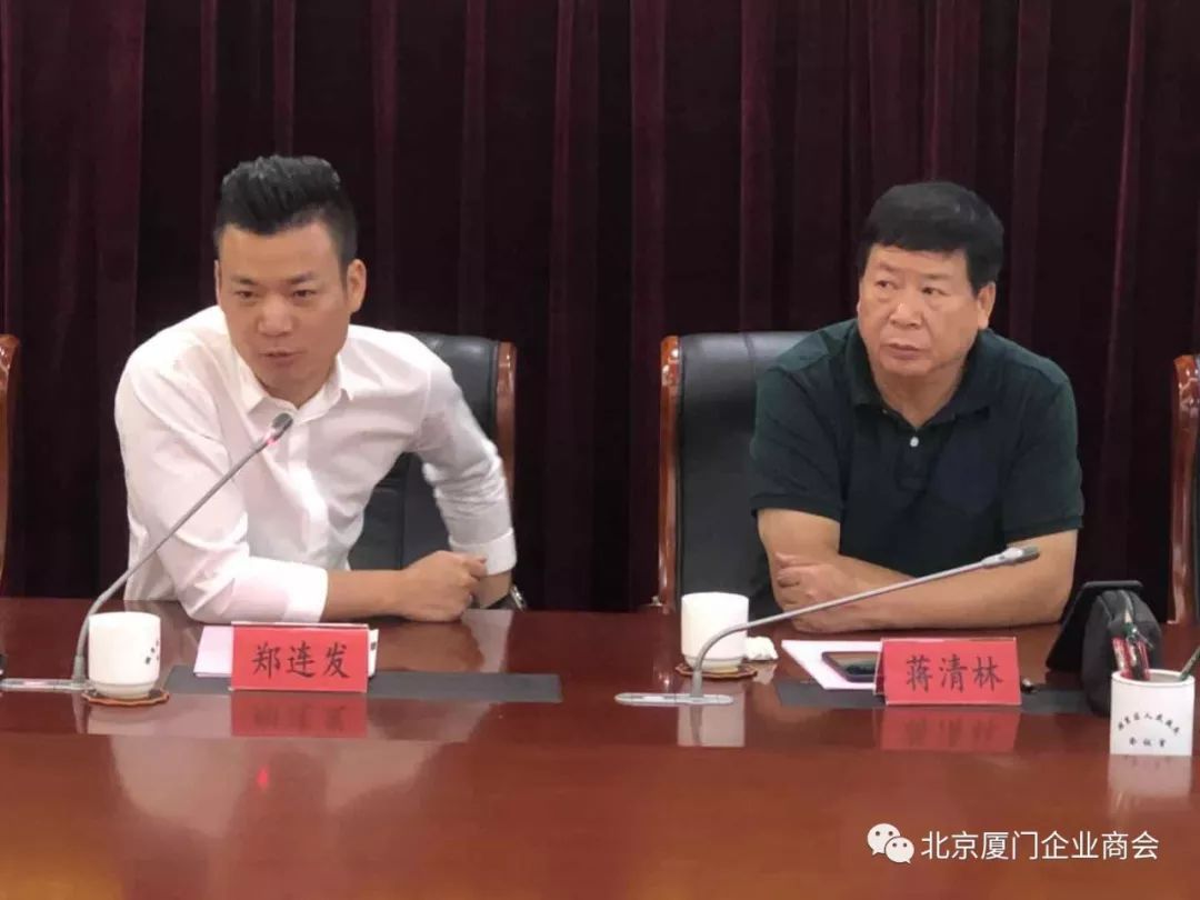 蒋清林会长对湖里区对本次座谈会的高度重视和热情接待表示感谢,并介绍了北京厦门企业商会及会员企业在湖里区的项目结合点。会中,执行会长郑连发,常务副会长王颐疆、郑而兵等先后针对自己的项目与相关区领导进行沟通交流。