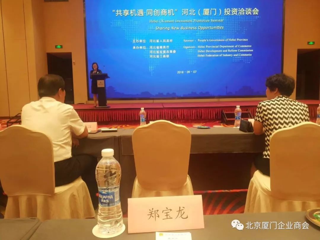 9月9日,我会郑两斌监事长单位——北京仟亿达集团受邀参加“共享机遇·同创商机”河北(厦门)投资洽谈会。仟亿达集团(股票代码831999)厦门仟亿达新能源科技有限公司董事总经理郑宝龙受邀上台分享“共享机遇·同创商机”河北(厦门)投资洽谈会主题演讲!河北省商务厅副厅长,河北省工商联,河北省发改委,河北省各地市分管副市长出席了本次座谈会议。