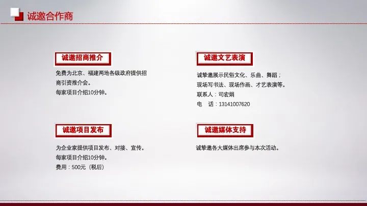 有关领导、近百家在京闽籍商会代表以及嘉宾出席活动。组委会代表赖思明介绍展会的活动意义、组织架构、活动概况、展会议程、展区规划等情况。经组委会研究决定,展会定于2021年1月8日—10日在北京闽龙广场四楼(乘3号电梯)隆重举办,招商报名工作正式启动。(详情请看以下招商手册)