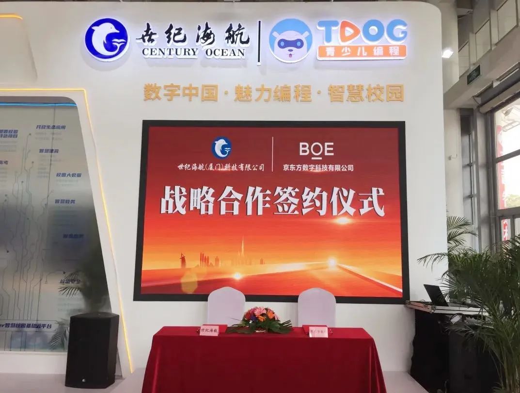 值此盛会之际,世纪海航教育科技集团(以下简称“世纪海航”)与京东方数字科技有限公司(以下简称“京东方数科”)、紫光教育科技有限公司(以下简称“紫光教育”)、国文阅读科技有限公司(以下简称“国文阅读”)战略合作协议签约仪式在厦门国际会展中心隆重举行。