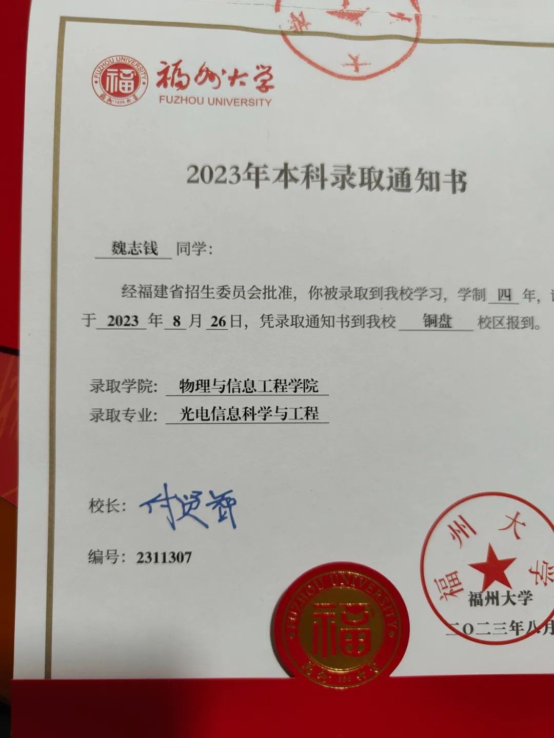录取学校:福州大学(“211工程”/国家“双一流”)
