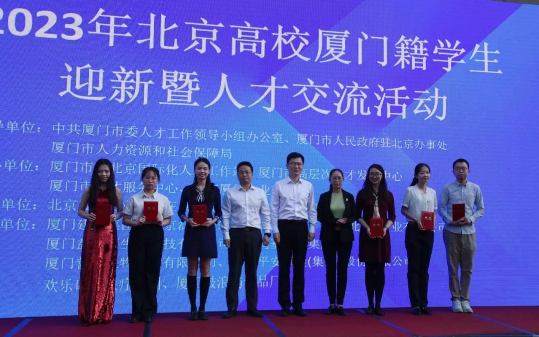 9月24日下午,厦门市人民政府驻北京办事处联合中共厦门市委人才办、市人力资源和社会保障局、北京厦门企业商会等单位,在北京厦门大厦举办2023年北京高校厦门籍学生迎新暨人才交流活动。首次聘请6名北京高校厦门籍优秀学生为“厦门引才使者”。