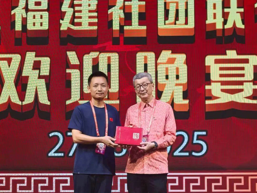 我会副会长、北京岩霸董事长江志民代表我会出席活动,并向林福山主席赠送礼品岩霸福茶,祝贺第一届东盟福建社团联合总会大会圆满成功!