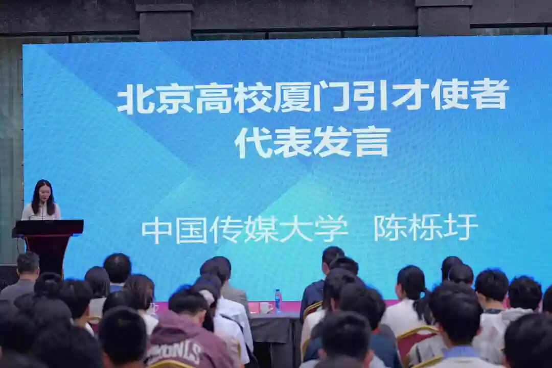 厦门市驻北京国际化人才工作站负责人陈怡光详细解读了厦门最新人才政策体系,从人才引进补贴、职业发展支持到生活保障福利等方面,全面展现了厦门对各类人才的诚意与吸引力,引发在场学子的浓厚兴趣与热烈讨论。同时,还举行了“北京高校厦门引才使者”聘书颁发仪式。受聘代表在发言中表示,将积极承担起“家乡代言人”的职责,主动向身边同学宣传厦门的发展机遇与人才政策,努力吸引更多优秀人才赴厦、返厦发展,为家乡人才队伍建设贡献力量。