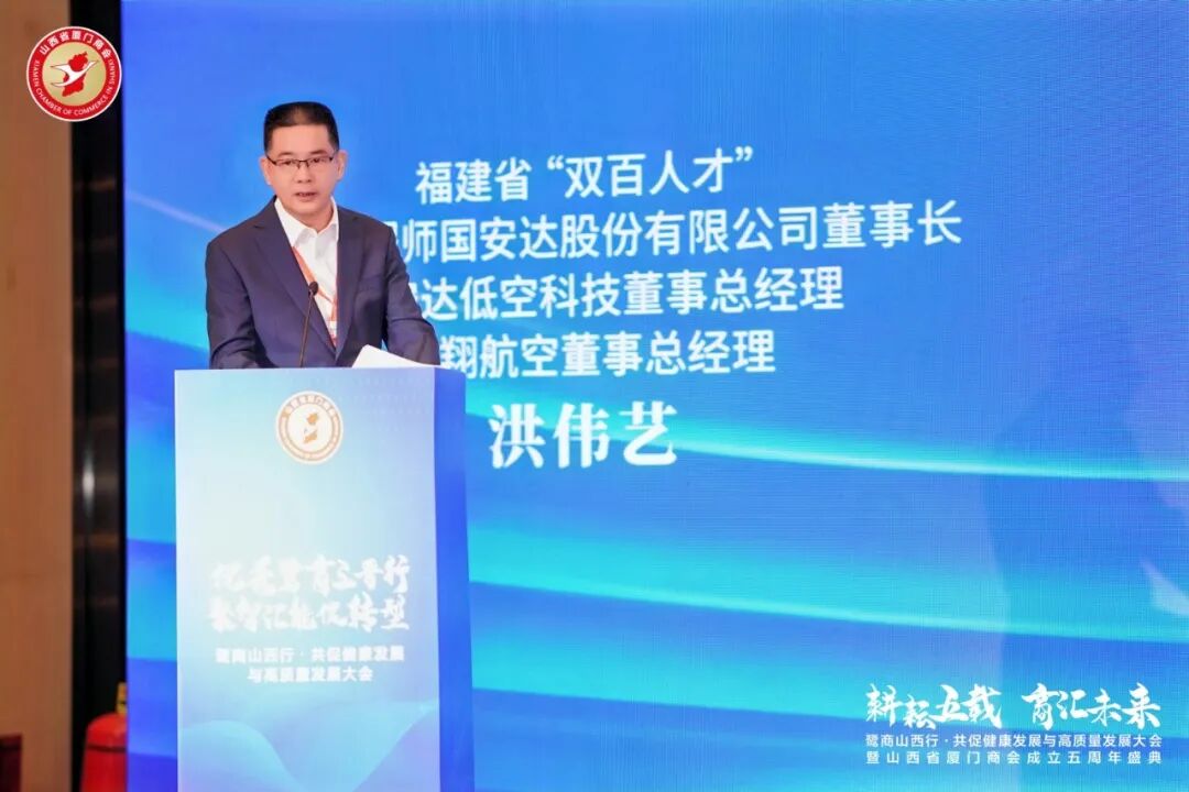 2025年9月26日,“鹭商山西行・共促健康发展与高质量发展大会暨山西省厦门商会成立五周年盛典” 在太原举行。北京厦门企业商会会长蒋清林,名誉会长洪伟艺、副会长楚东辉、执行副秘书长韩雪应邀出席,与来自海内外的40余家商协会、100余名政企学界精英齐聚一堂,共襄盛举。此次大会由山西省工商联、厦门市工商联联合主办,山西省厦门商会承办,旨在汇聚鹭商智慧与力量,深度融入山西转型发展大局。此次会议以 “优秀鹭商三晋行,聚智汇能促转型” 为主题,既是山西省厦门商会成立五周年发展成果的全面总结,更是晋厦两地积极响应国家高质量发展战略、深化区域协同的务实举措。大会通过政策深度解读、重点项目精准对接、先进经验分享交流等多元形式,为两地企业搭建起高端、高效的合作平台,有力推动鹭商力量深度融入山西转型发展大局,为区域经济高质量发展注入新活力。山西省统战部副部长、省工商联党组书记陈旭忠在致辞中指出,山西与厦门虽山海相隔,但合作渊源流长,从古代的“万里茶路”到今天的能源与港口互助,始终秉持“优势互补、互利共赢”理念。面向未来,他提出三点展望:一是共促文旅交融,联合打造跨区域旅游线路;二是共推产业互补,在新能源、装备制造等重点领域深化合作;三是共筑开放高地,携手对接“一带一路”,拓展对外开放新空间。厦门市政协党组副书记、副主席黄晓舟随后发表讲话。他首先代表厦门市对大会的召开及山西省厦门商会成立五周年表示热烈祝贺。黄晓舟副主席在讲话中强调,厦门正加快建设高质量发展引领示范区。他寄语广大鹭商:一要当好 “先行者” ,推动厦门在数字、海洋经济方面的优势与山西能源、产业基础深度融合,开拓发展新路径;二要当好 “代言人” ,积极宣传山西优良营商环境,引导更多企业与人才西进兴业;三要当好 “连心桥” ,依托商会平台,促进两地理念、政策、产业互联互通,共同打造区域合作的典范。与会企业家们纷纷表示,山西作为国家重要的能源基地,近年来正加速培育新兴产业,营商环境持续优化,发展潜力不断释放;晋厦在产业链协同、科技创新、绿色低碳等领域合作空间广阔、前景可期。此次大会不仅为山西产业转型与经济高质量发展注入了强劲新动能,也为沿海地区与内陆地区协同发展提供了可复制、可借鉴的宝贵范式,必将推动区域合作迈向更高水平、实现更大突破。会上,北京厦门企业商会名誉会长、国安达股份有限公司董事长洪伟艺以“新形势下企业产业转型升级积极拥抱新质生产力之低空经济产业发展战略”为主题做了精彩分享。他表示,低空经济在产业发展策略上,企业需精准落子空域经济活动,探索多元应用场景;通过制造端升级、技术驱动创新、高效协同作战、未来产业融合构建提升核心竞争力的产业模式;以城市低空治理新范式、高端物流服务体系、大城市交通拥堵立体化od体育app下载的解决方案、工业与公共服务规模化领域等应用场景实现价值闭环;依靠内育外引广纳贤才、产教融合激活生态,以人才和技术为基石增强动能;同时打造涵盖工业无人机和专业装备定制销售等多个环节的“政、产、学、研、用、服、金”七位一体低空经济全产业链生态,从而在新质生产力浪潮下实现产业转型升级。此次会议以“优秀鹭商三晋行 聚智汇能促转型”为主题,既是山西省厦门商会成立五周年发展成果的全面总结,更是晋厦两地积极响应国家高质量发展战略、深化区域协同的务实举措。大会通过政策深度解读、重点项目精准对接、先进经验分享交流等多元形式,为两地企业搭建起高端、高效的合作平台,有力推动鹭商力量深度融入山西转型发展大局,为区域经济高质量发展注入新活力。